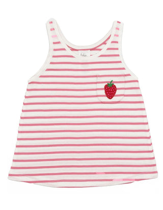 Girl's Sleeveless Stripe Strawberry Vest in Pink
