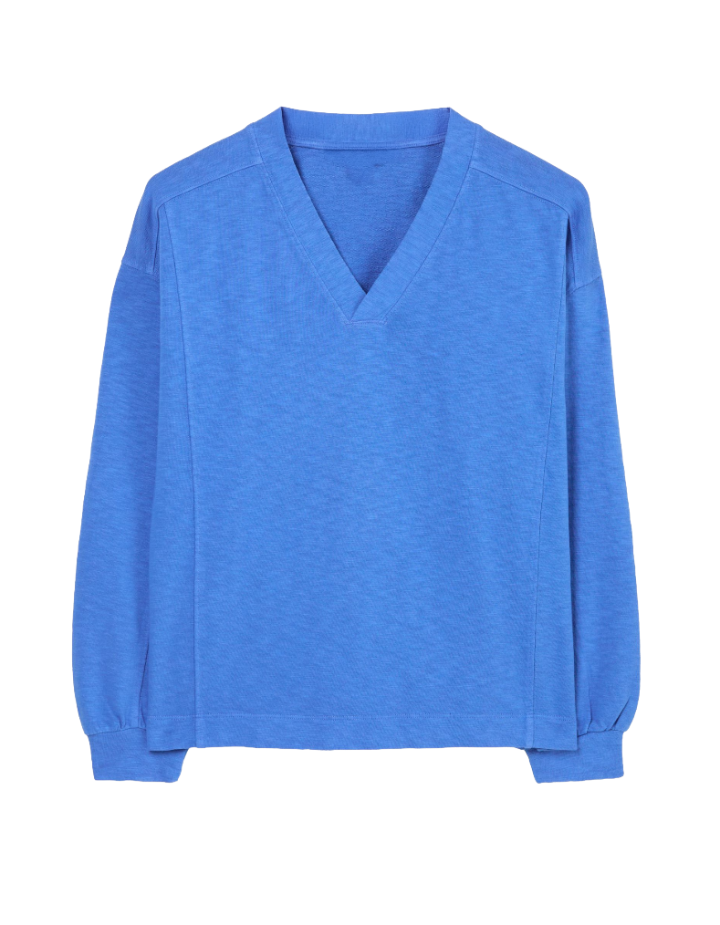 The Gigi V-neck sweatshirt delivers understated sophistication through its thoughtfully designed silhouette. Constructed from pure cotton, this piece offers genuine breathability and a soft hand-feel that improves with wear. The V-neckline provides a flattering frame whilst maintaining the relaxed aesthetic that defines modern casual dressing. Versatile enough to transition seamlessly from weekend errands to evening relaxation, it pairs equally well with tailored denim or comfortable joggers. An essential layering piece for any considered wardrobe.