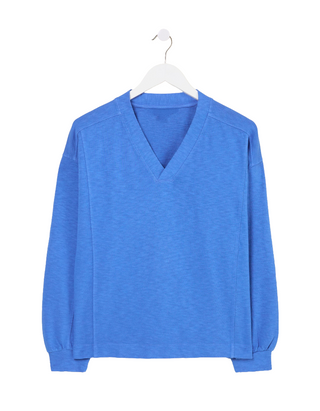 Women's Gigi V Neck Sweatshirt in Mid Blue