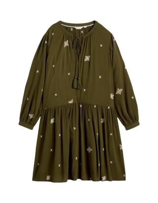 Women's 3/4 Sleeve Witch Hazel Printed Jersey Dress in Handicraft Flowers Bright Olive