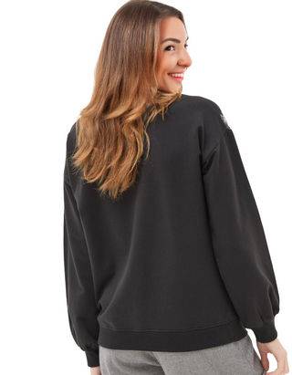 Women's Long Sleeve Embroidered Crew Sweat Top in Black (Imperfect)