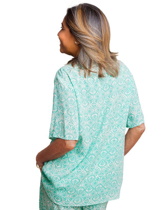 Women's Studio Glass V-neck Jersey Top Climbing Leaf Maritime