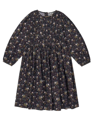Bonton Girls' Smocked Detail Floral Faustine Lurex Dress in Charcoal Grey