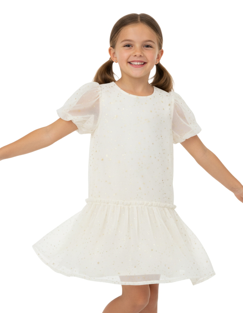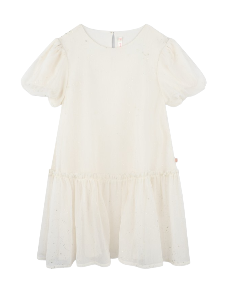 Billieblush Girls Starry Print Chiffon Dress in Cream & Gold