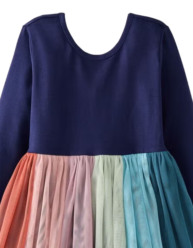 Girl's Long Sleeve Tulle Rainbow Dress in Navy
