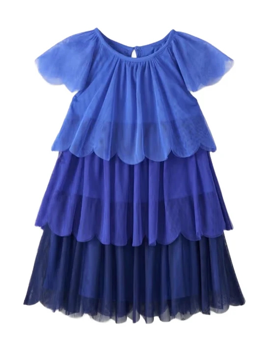 Girls' Tiered Tulle Dress in French Blue (Imperfect)