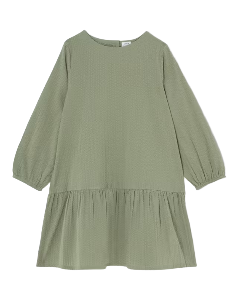This John Lewis girls' dress in fresh green features a flattering smock shape crafted from pure cotton for natural comfort and breathability. The button-back detailing adds a charming touch while ensuring easy dressing, and the playful frilled hem brings subtle movement and style. Designed to fall at knee length, it offers both practicality and elegance for everyday wear. Please note, to maintain its quality, do not tumble dry this garment.
