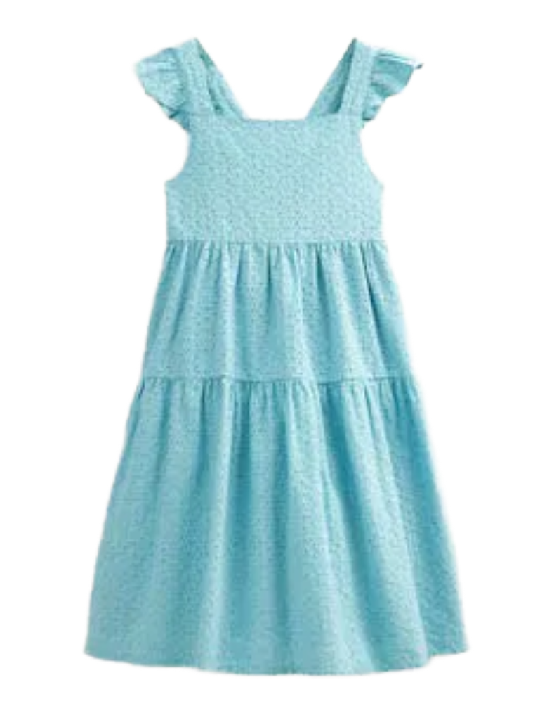 Mini Boden Girl's All Over Broderie Frill Dress in Aqua Blue