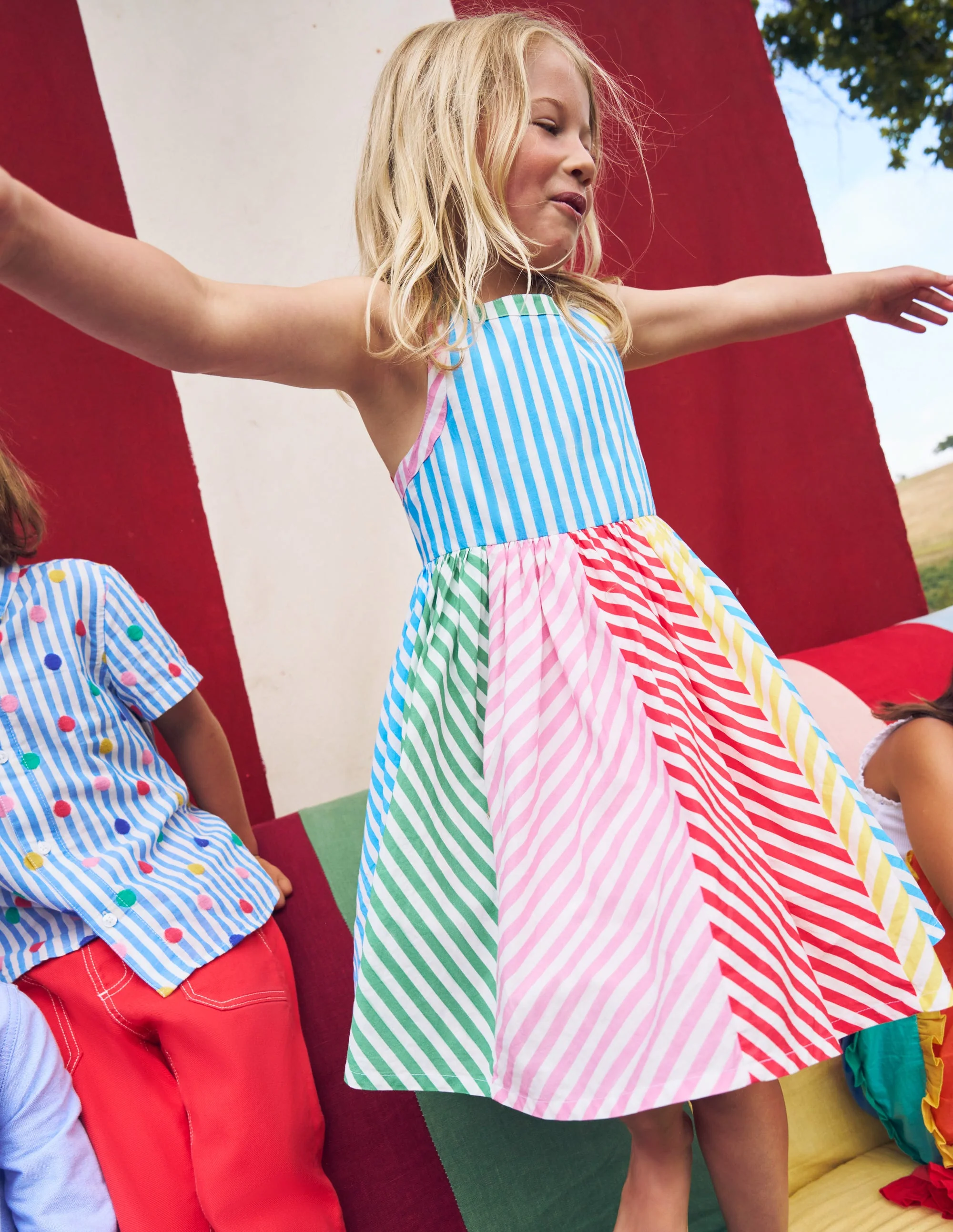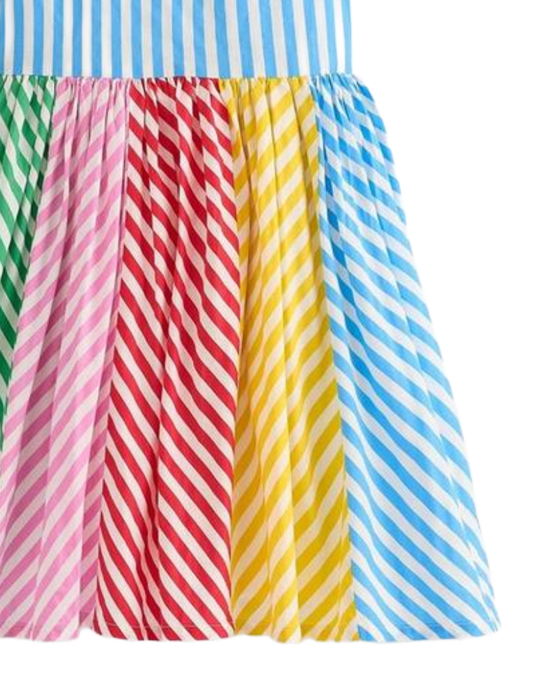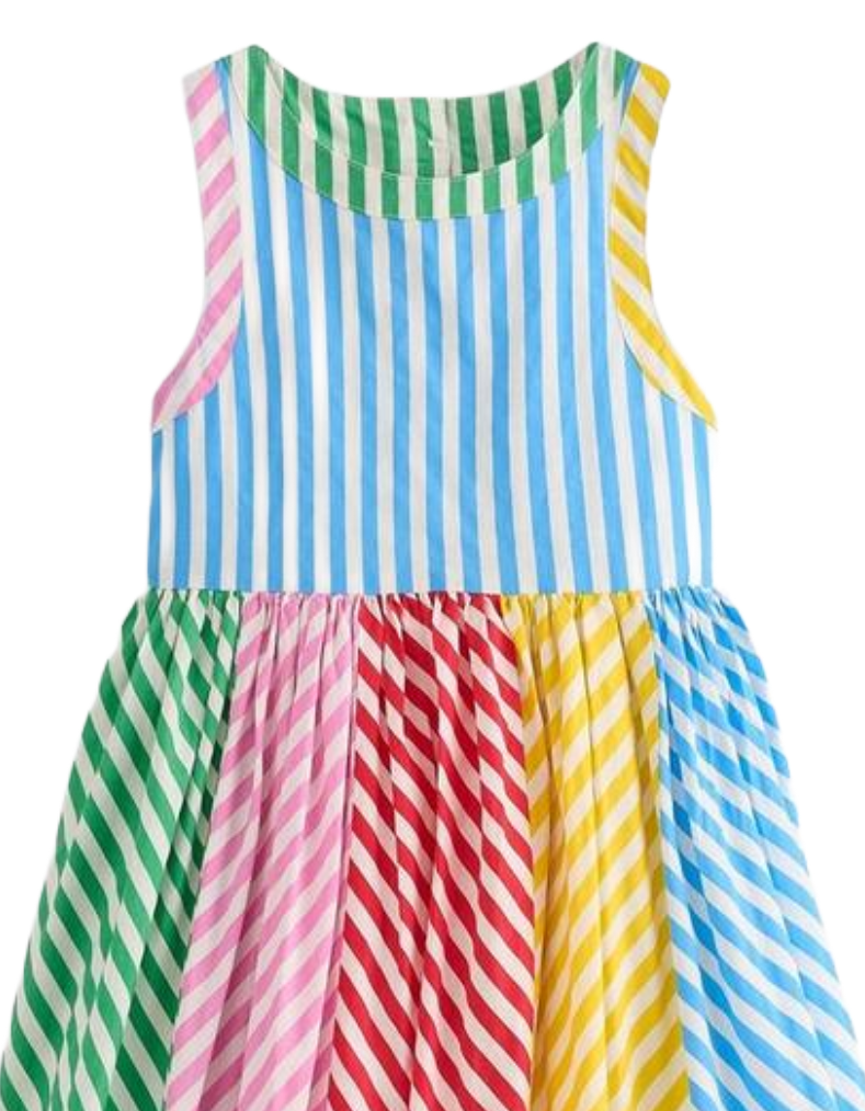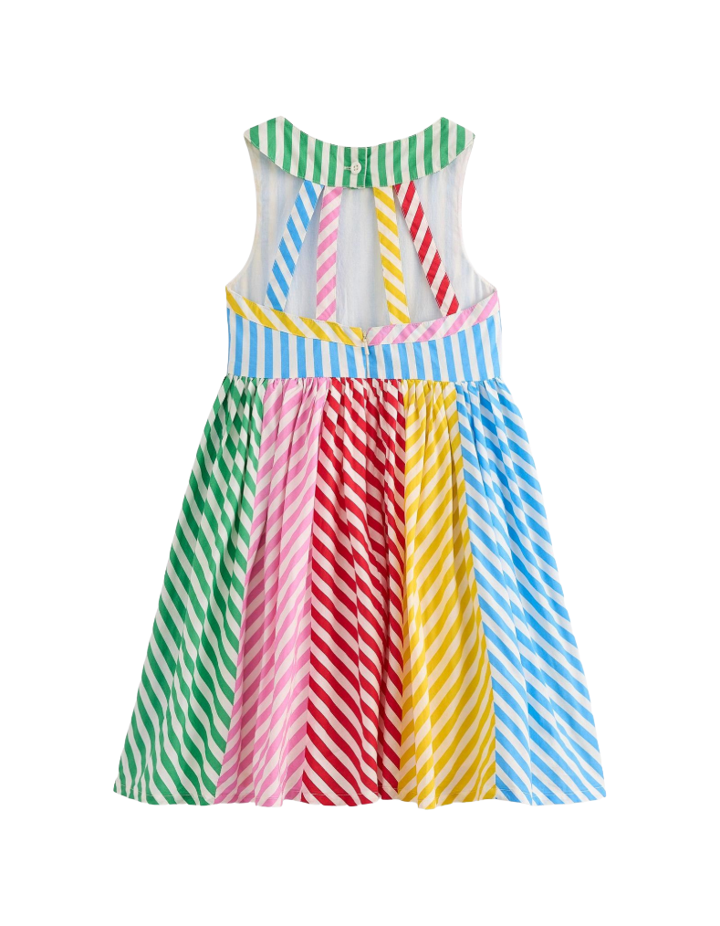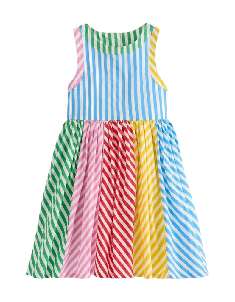 Designed for adventurous days and charming strolls, the Mini Boden Girl's Harlow Back Detail Dress features a fitted bodice with elegant back straps, ensuring a secure and comfortable fit. Its full, swishable skirt allows freedom of movement, perfect for exploring narrow lanes or new shores. The vibrant Hotchpotch Multi Stripe pattern adds a playful yet sophisticated touch, making this dress both practical and stylish for young explorers.