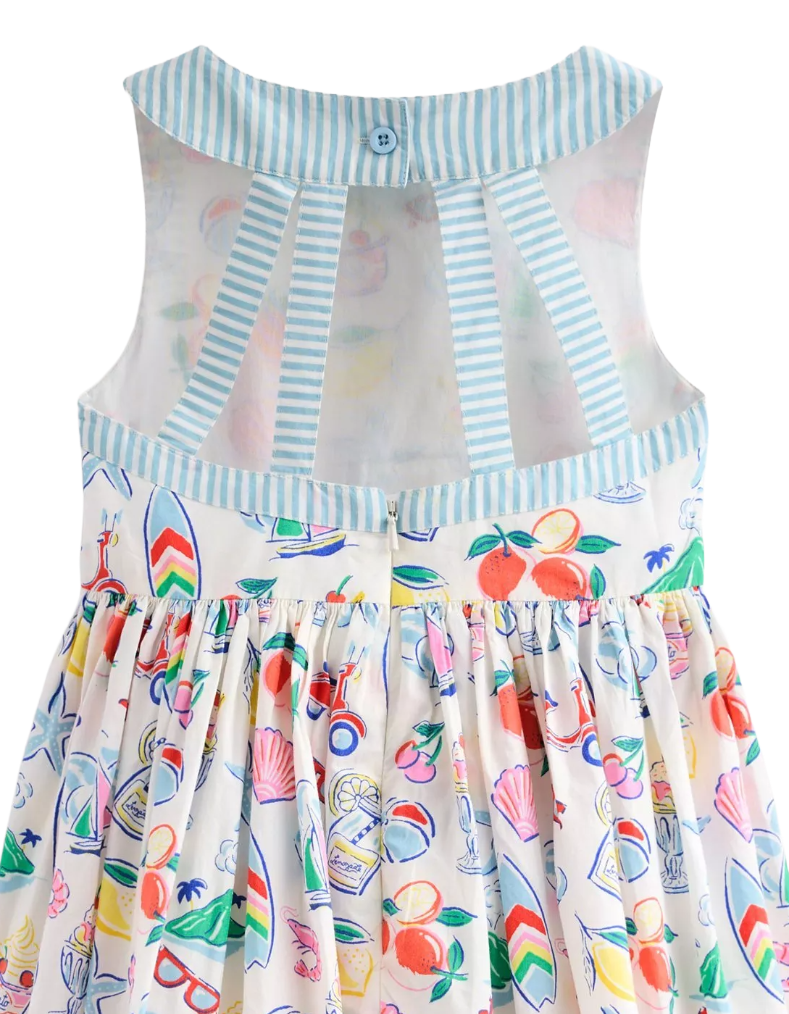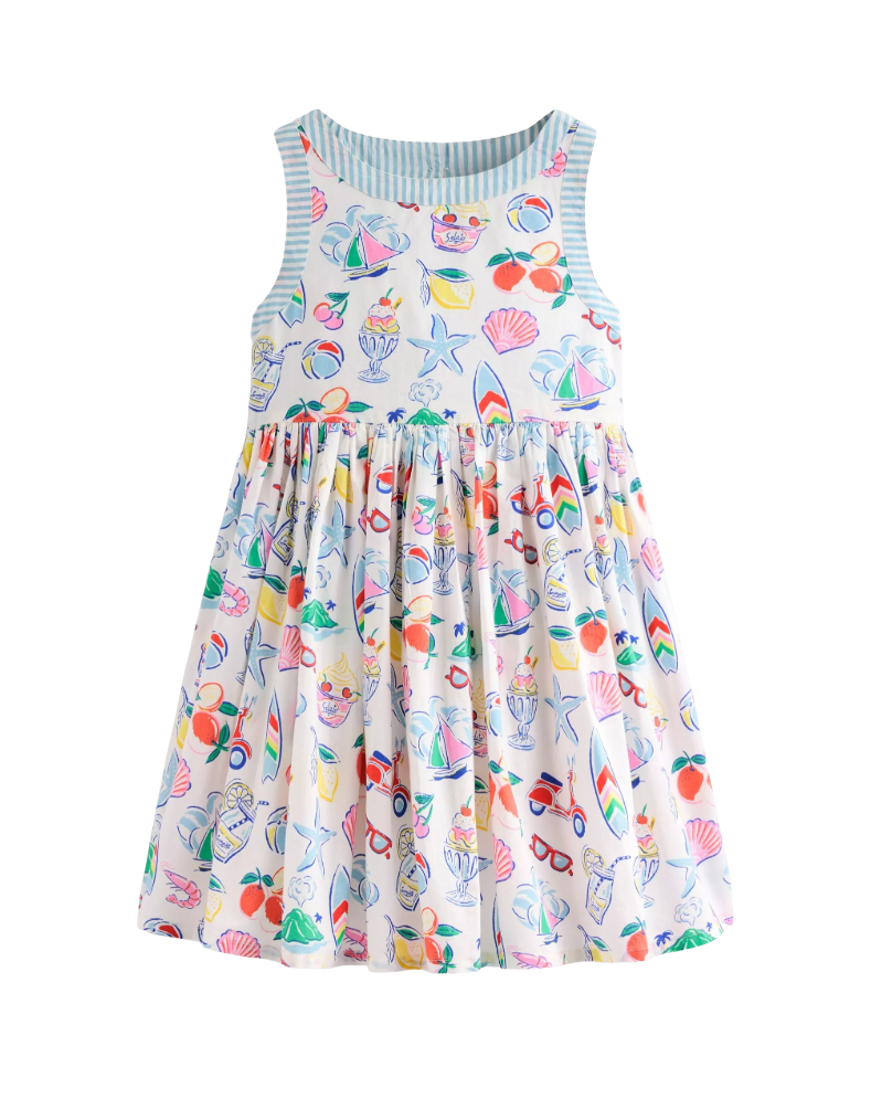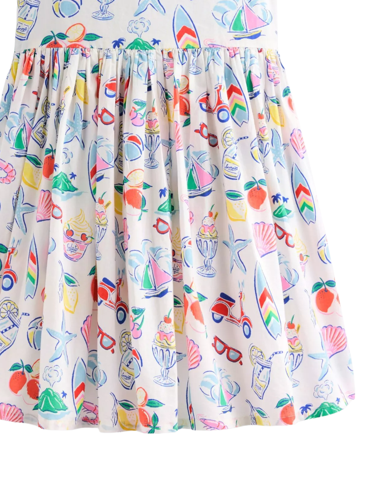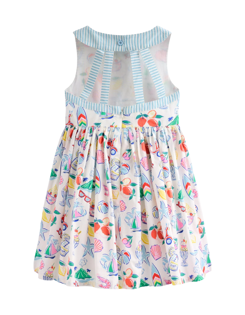 Designed for comfort and style during active play, the Mini Boden Girl's Harlow Back Detail Dress in Ivory Holiday Print features a fitted bodice with delicate back straps that ensure a secure fit. Its full, swishable skirt allows freedom of movement, making it ideal for exploring narrow lanes or enjoying seaside adventures. The subtle holiday print adds a charming touch, perfect for everyday wear or special outings. Crafted with attention to detail, this dress balances practicality and elegance for young explorers.