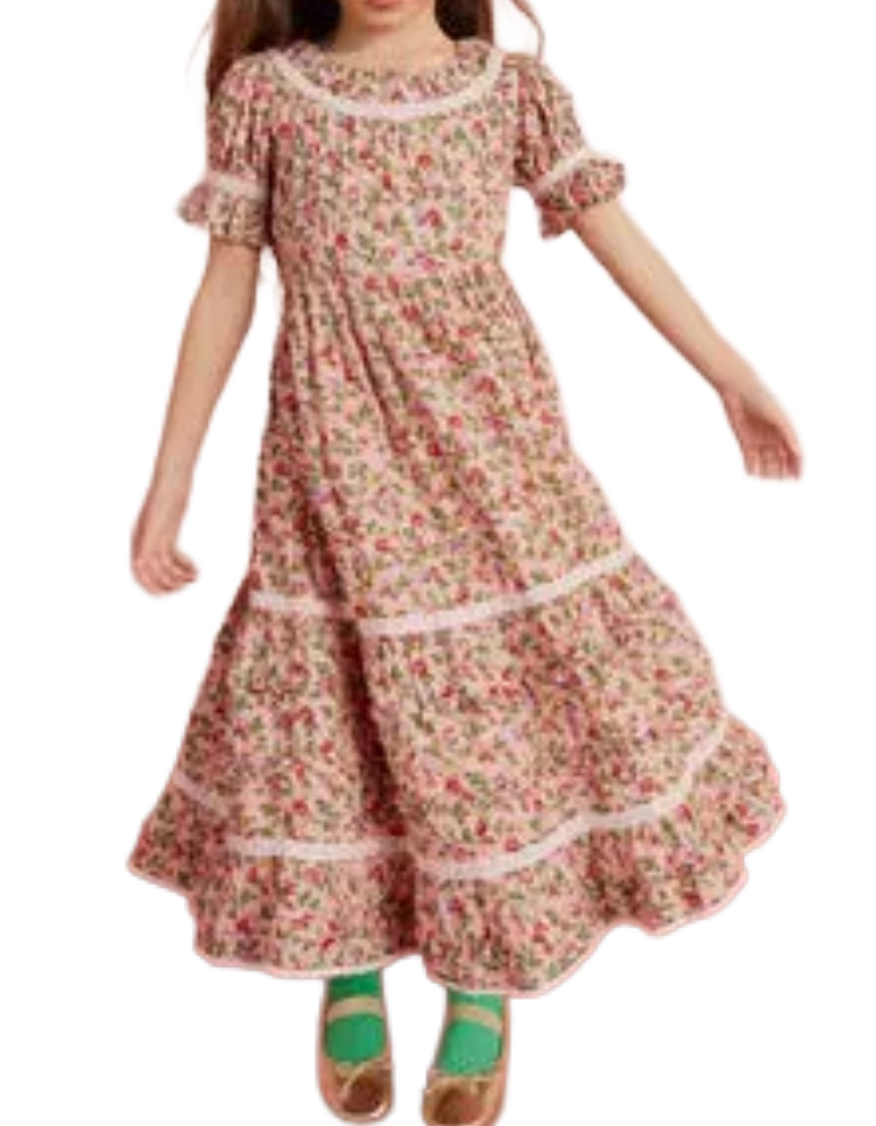 This Mini Boden Girls' Printed Lace Trim Party Dress in Pink Blossom features a graceful A-line silhouette and charming short puffed sleeves, perfect for making an impression at any celebration. Delicate lace trims and ruffled tiers enhance its feminine appeal, while a grosgrain sash belt defines the waist, offering a flattering fit. Designed with attention to detail, this dress combines elegance and playful style, making it an ideal choice for special occasions and memorable moments.