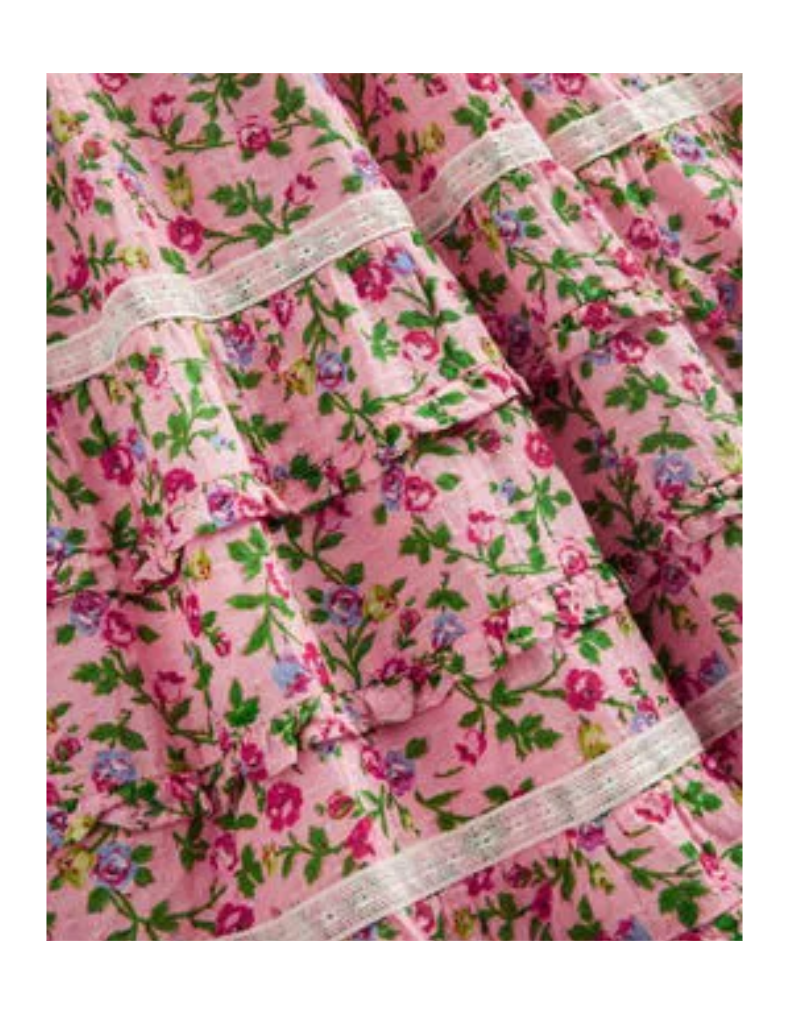 Mini Boden Girls' Printed Lace Trim Party Dress in Pink Blossom