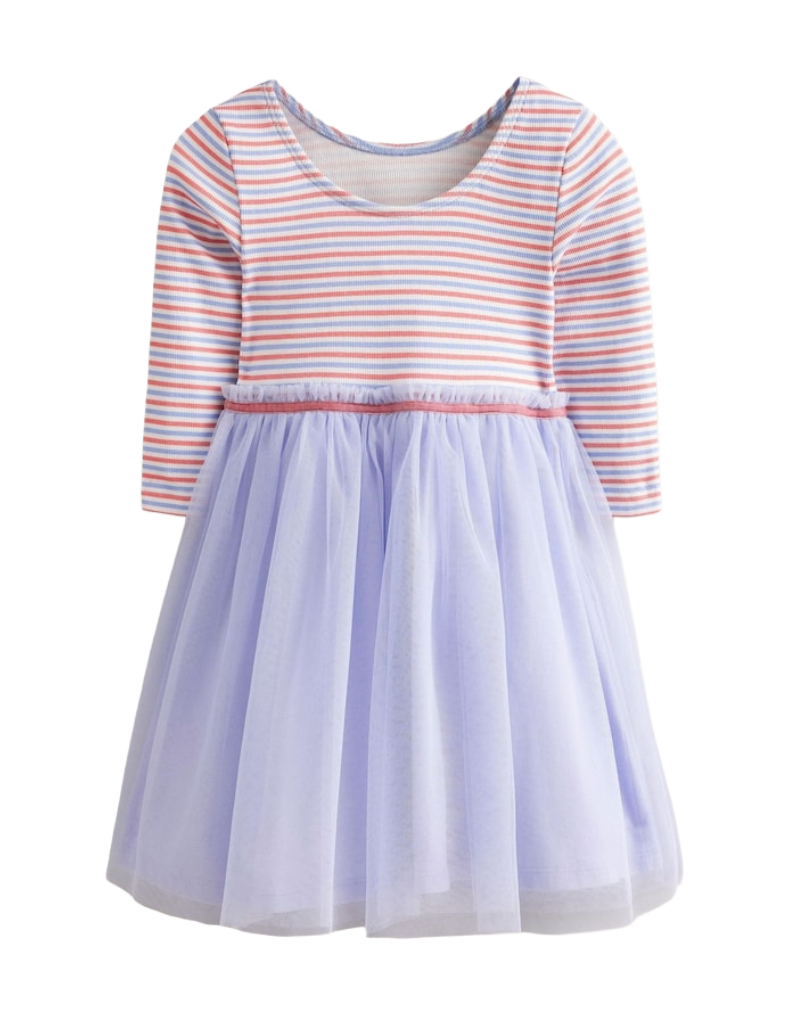Mini Boden Girl's Rib Jersey Tulle Dress in Purple