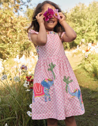 Mini Boden Girl's Applique Smocked Elephant Embroidered Dress in Pink