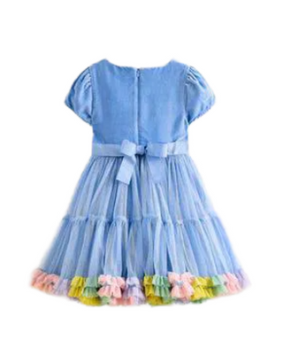 Girl's Embroidered Tulle Skater Dress in Blue Unicorn Starscape (Imperfect)