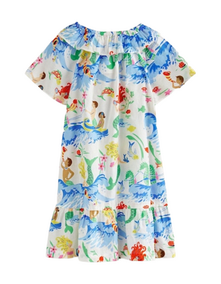 Mini Boden Girl's Mermaid Pull-On Holiday 100% Cotton Dress in Cream Mix