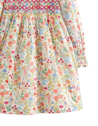 Mini Boden Girl's Cosy Smocked Dress in Vanilla White Fairies