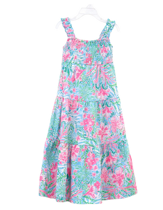 Lilly Pulitzer Girls' Mini Hadly Tiered Maxi Dress in Amalfi Blue