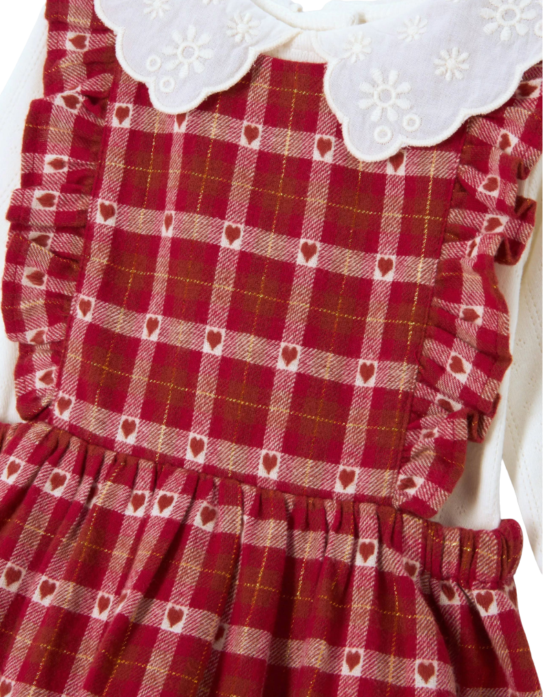 John Lewis & Pratners Baby Check Heart Pinny Dress in Valentino Red