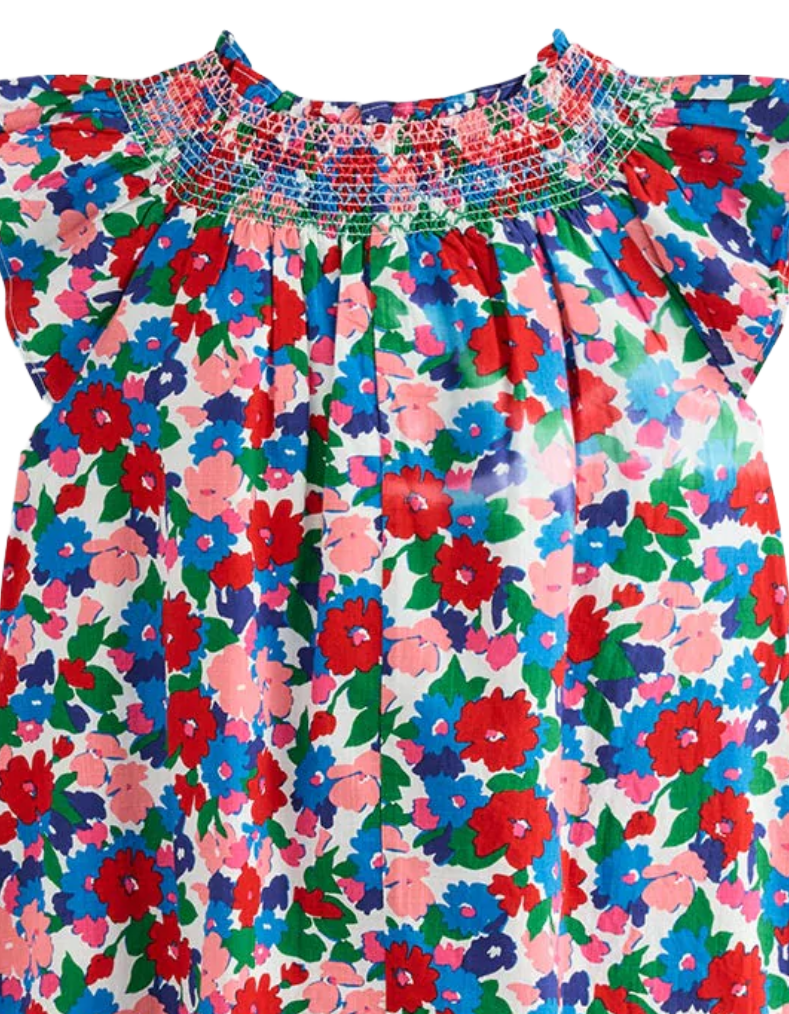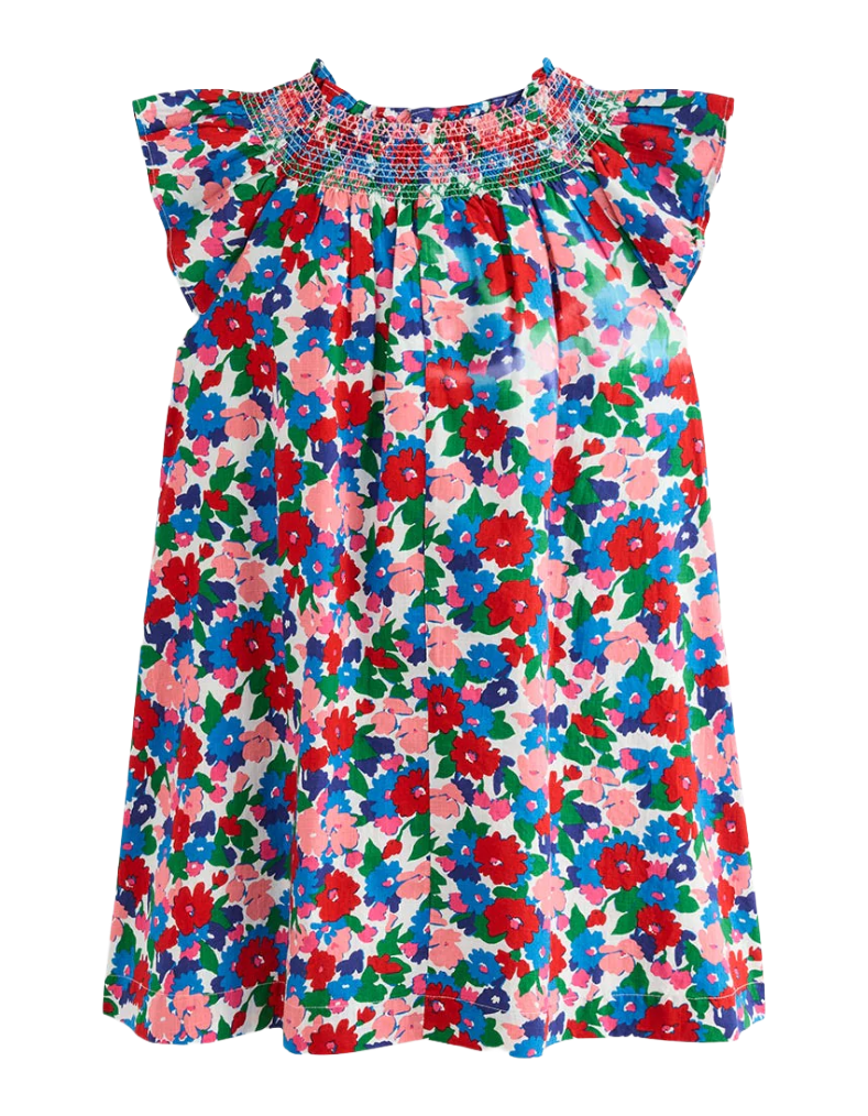 This Mini Boden girl's dress features a smocked bodice that adds texture and shape, complementing the voluminous puffed sleeves and a swingy skirt for effortless movement. Crafted from breathable cotton, it ensures comfort throughout warm days, making it an ideal choice for stylish city outings.