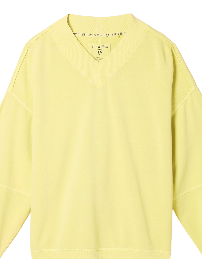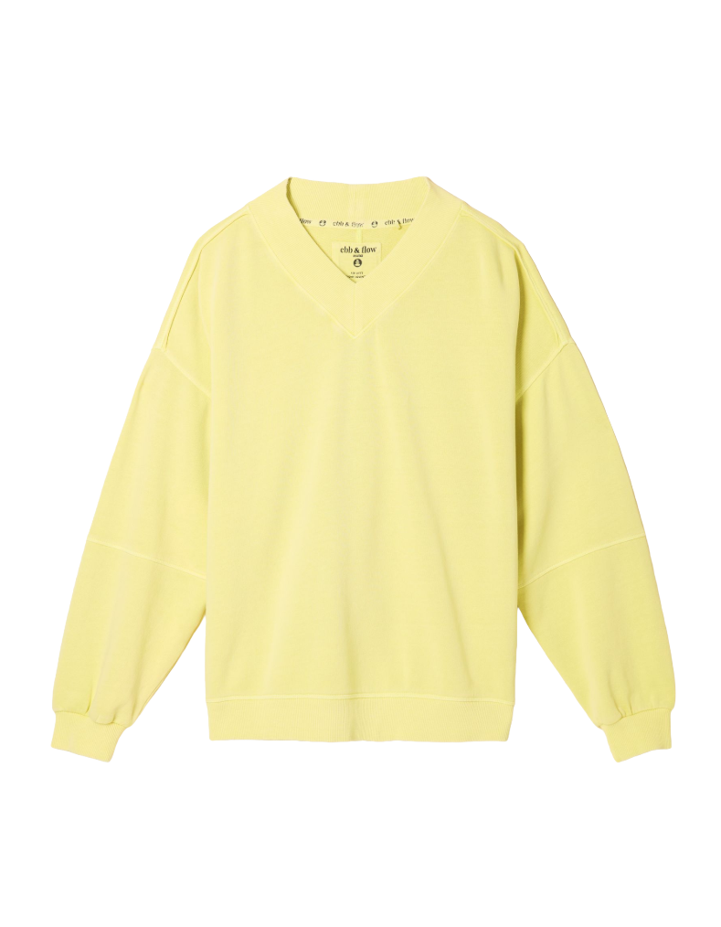 Women's Cotton Long Sleeve Lars V Neck Sweat Top in Yellow Plain (IMPERFECT)