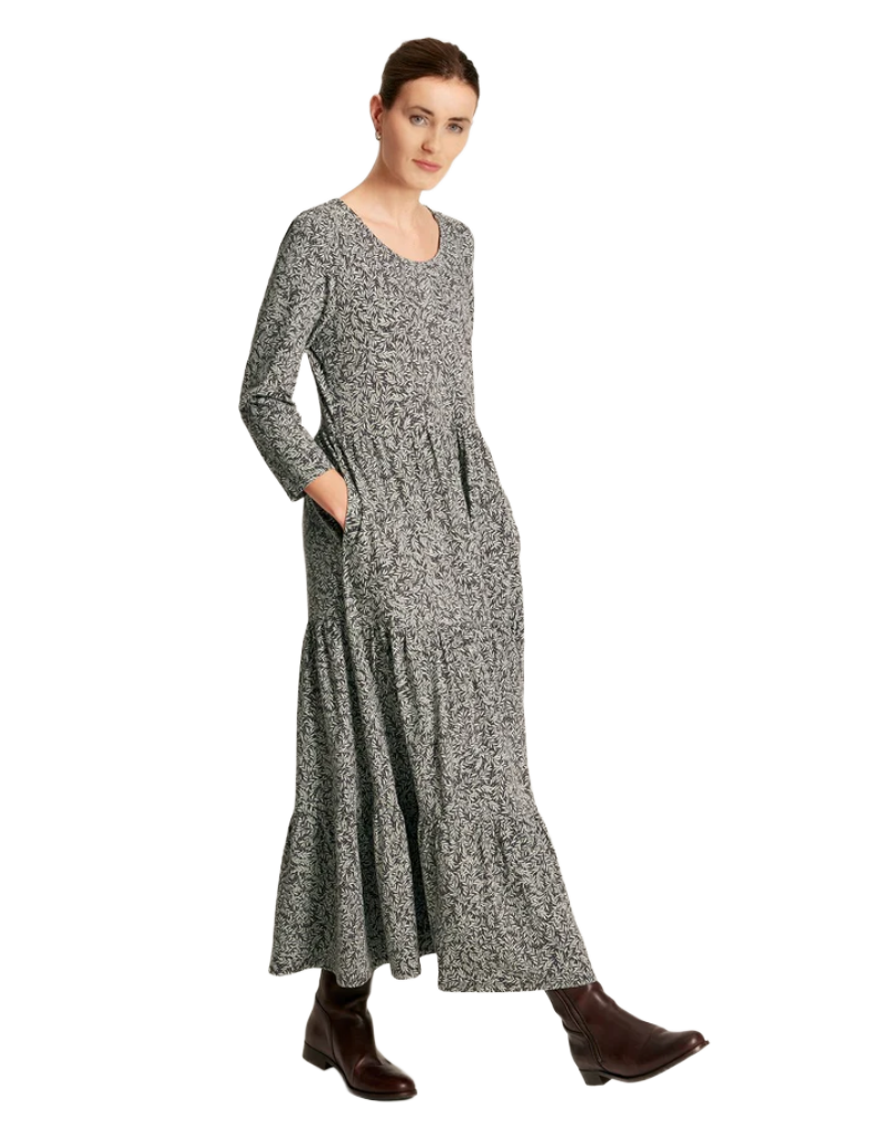 The Joules Ivy Jersey Dress combines comfort with considered design, making it an essential addition to any transitional wardrobe. Crafted from a soft cotton-rich jersey blend, this midaxi dress features a flattering silhouette with gathered tiers throughout the skirt and subtle gathers at the top of the 3/4 sleeves. The crew neckline and practical side pockets enhance its everyday appeal, whilst the tiered construction creates gentle movement and dimension. Perfect for layering through seasons, this timeless piece delivers effortless femininity with genuine wearability.
