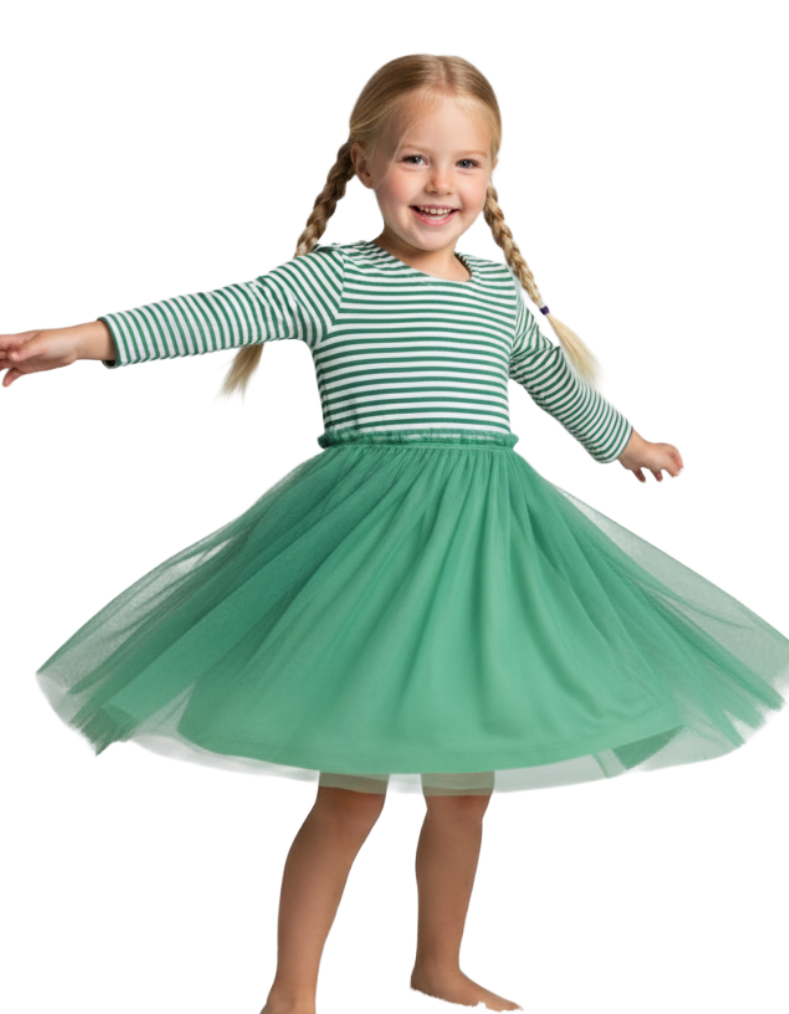 This Mini Boden girl's dress combines a comfortable ribbed jersey top with a delicate tulle overlay skirt, offering both flexibility and elegance. Designed to move gracefully, it’s ideal for young dancers practicing plies and pirouettes, providing ease of movement without compromising style. The soft pink hue adds a charming touch, making it a practical yet beautiful choice for dance classes or special occasions.