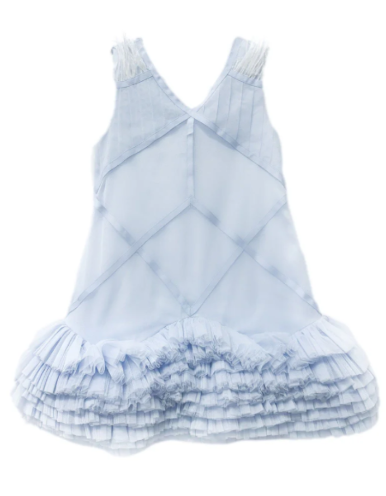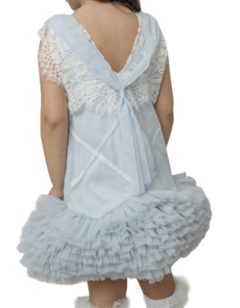 Transform your daughter into an enchanting fairy princess with the Petite Maison Kids Skylar Tulle Tutu Dress. This stunning blue creation features a criss-cross ribbon bodice, voluminous tulle skirt with delicate ruffles, feathered shoulder accents, and intricate lace detailing at the back. Cut above the knee with a side zipper closure and fully lined construction, it's expertly crafted from 100% polyester in Turkey. The dress fits true to size and works beautifully for special occasions, celebrations, and memorable events. For optimal presentation, gently steam the tulle layers to achieve the perfect tutu silhouette. Machine wash cold on delicate cycle inside out; air dry only.