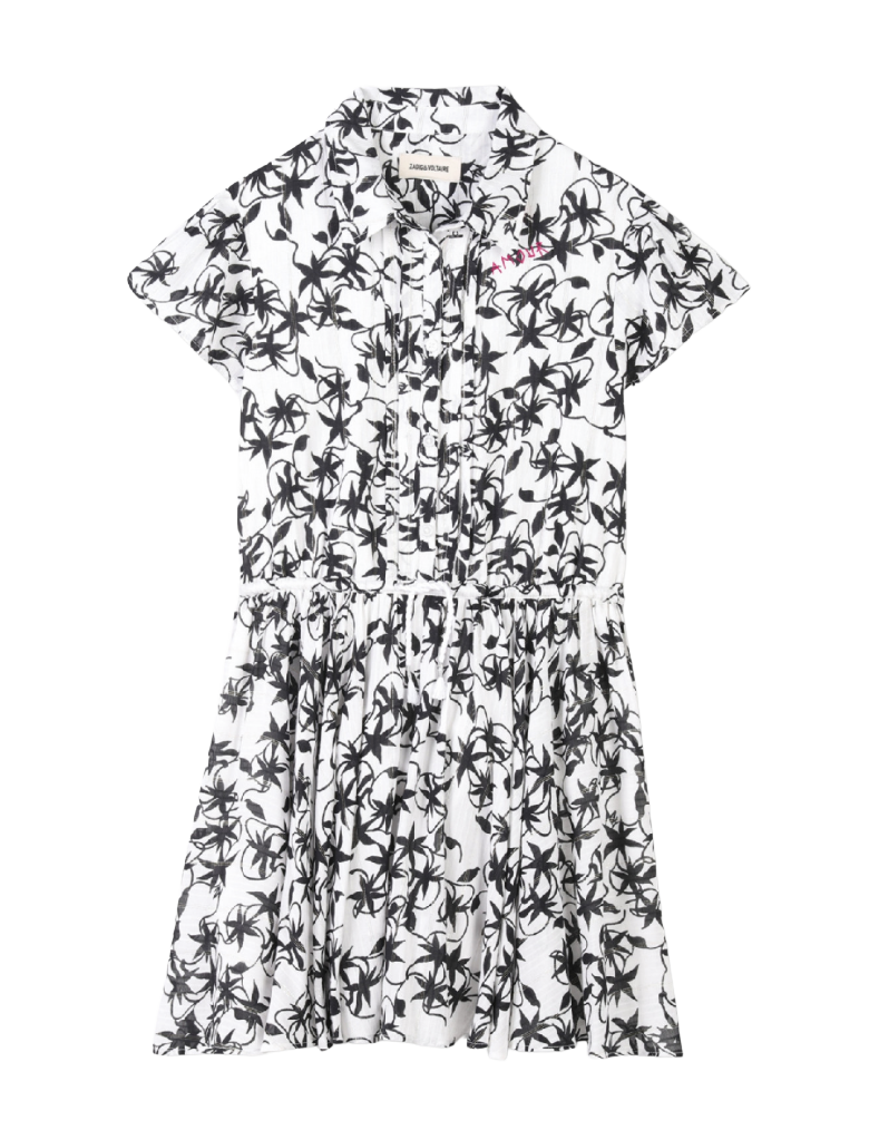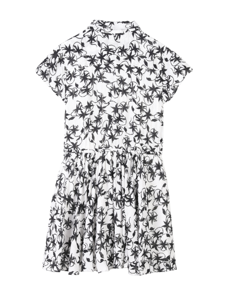 Zadig & Voltaire's leaf-print shirt dress combines effortless style with practical design. Crafted in crisp white with an elegant botanical motif, this piece features a classic spread collar and short sleeves for warm-weather versatility. The front button fastening allows easy dressing, whilst the belted waist creates a defined silhouette. Perfect for layering or wearing standalone, this dress transitions seamlessly from casual days to more polished occasions. An investment piece that grows with your child's wardrobe.