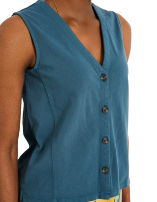 Women's Joni Button Up Sleeveless Jersey Waistcoat in Dark Teal Blue