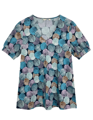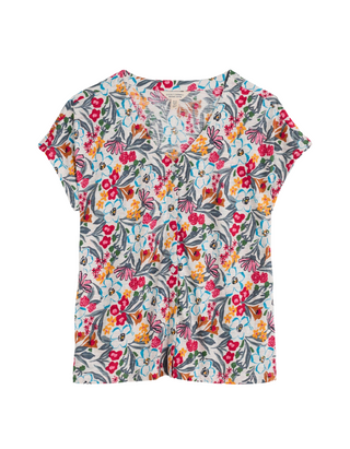 Women's Printed Short Sleeve Rosehip Jersey Top in Maritime Pebble