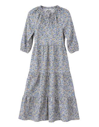 Women's Cotton Tiered Floral Midi Dress in Ditsy Blue