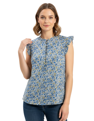 Women's Frilly Willow Floral Blouse in Ditsy Blue