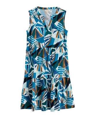 Women's Mainland short Sleeve Jersey Dress Multi Stacked Buoys Mid Teal