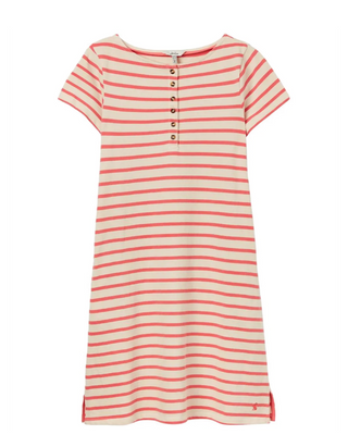 Women's Short Sleeve Kea Henley Dress in Coral Stripe