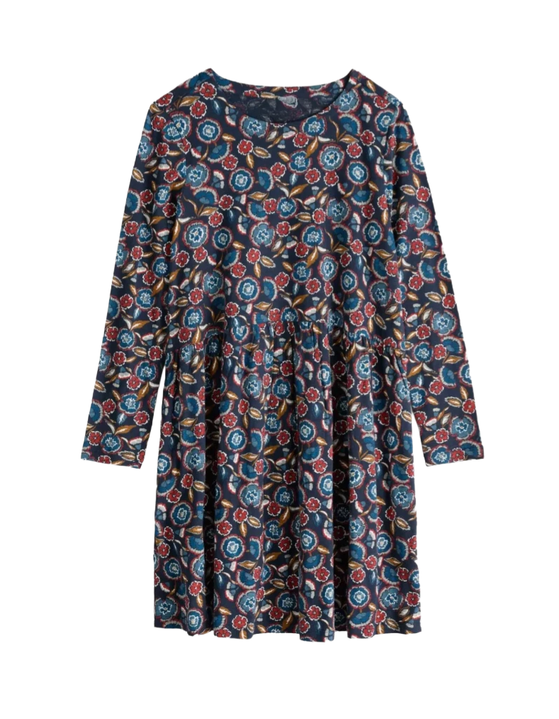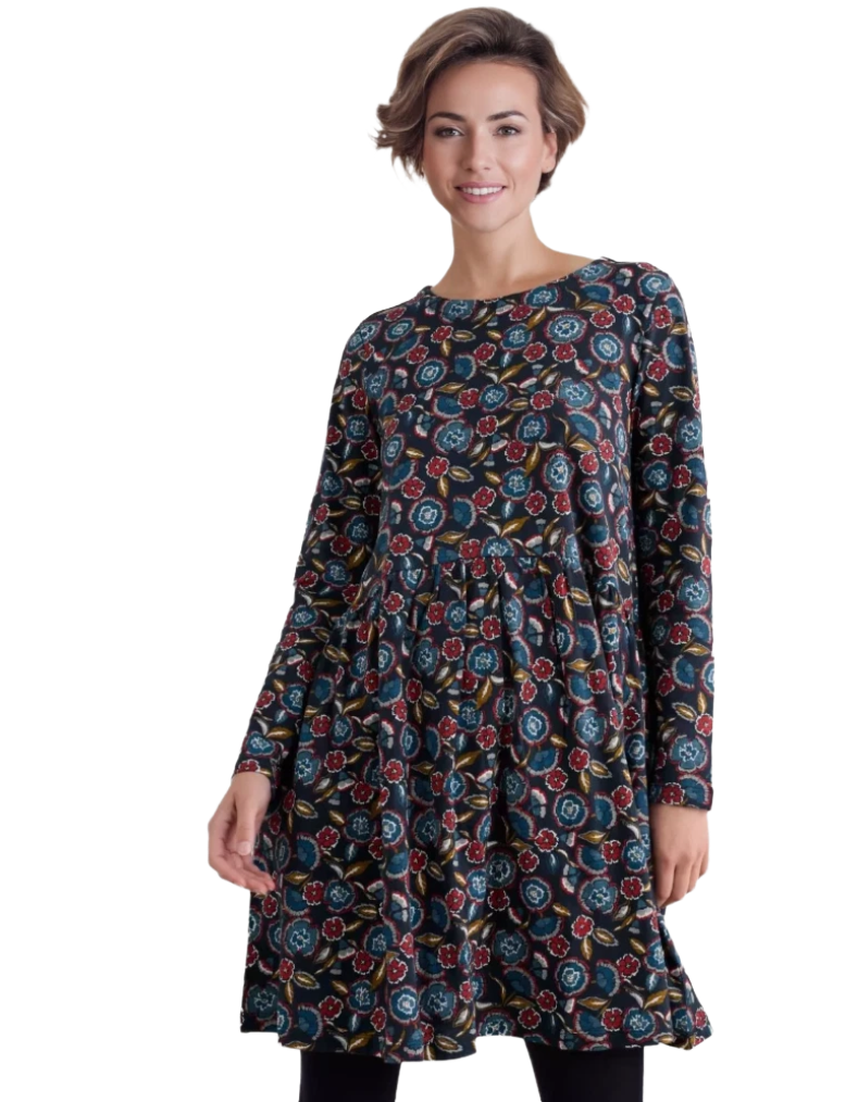 Seasalt's Sea Mirror Dress combines effortless style with practical comfort. Crafted from soft, breathable jersey cotton, this piece features an eye-catching floral maritime print that elevates any wardrobe. The flattering flared silhouette is enhanced by subtle gathers at the front waist, while short sleeves offer versatile layering options. Falling just above the knee, it's the perfect length for both casual and semi-formal occasions. Thoughtfully designed with hidden in-seam pockets, this dress delivers both beauty and functionality for the modern woman.
