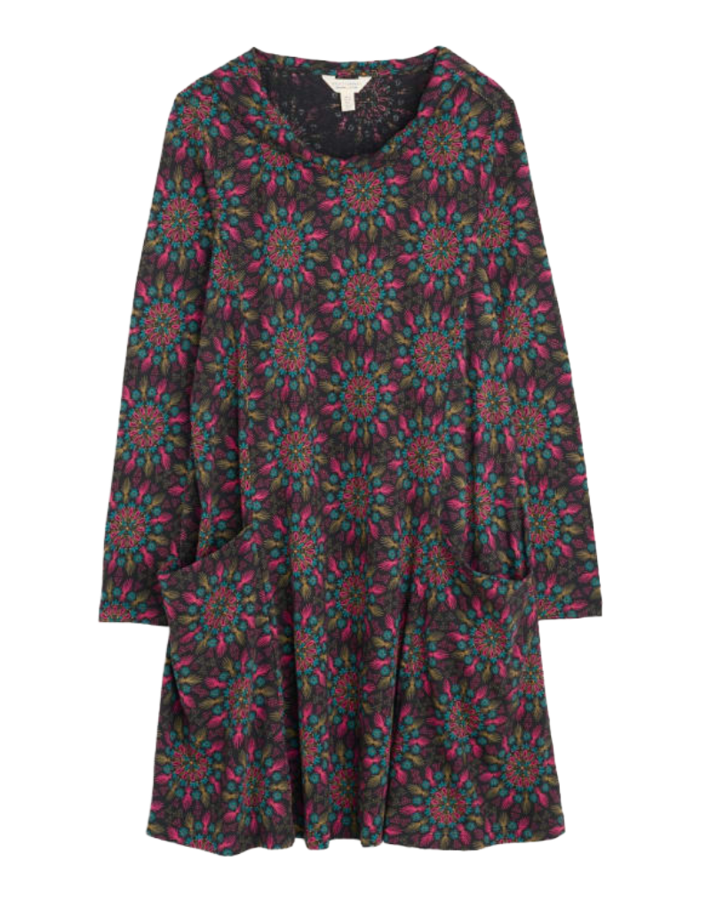The Seasalt Sea Oak Dress combines effortless style with everyday comfort. Crafted from soft slub cotton, this swing-cut dress features a panelled construction that delivers a relaxed silhouette with generous movement. The refined stand neck and long sleeves offer understated elegance, whilst generous slouchy pockets add practical appeal. The Frost Flower Onyx colourway works beautifully layered with leggings or tights, making it a versatile wardrobe staple that transitions seamlessly across seasons. Perfect for those seeking a dress that prioritises both comfort and timeless design.
