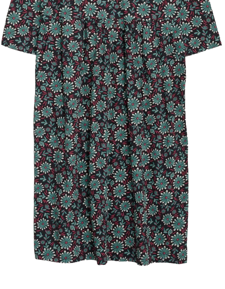 Crafted from mid-weight organic cotton slub, this midi dress combines softness with natural stretch for effortless wear. Strategically placed gathers below the waist create graceful movement and flattering volume, while practical pockets add everyday functionality. The relaxed silhouette pairs beautifully with trainers for casual styling, or layer with our Sea Dance Leggings when temperatures drop. A versatile wardrobe essential that balances comfort with considered design.
