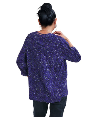 Women's Long Sleeve Fallon Waterfall Blouse in Navy Paisley