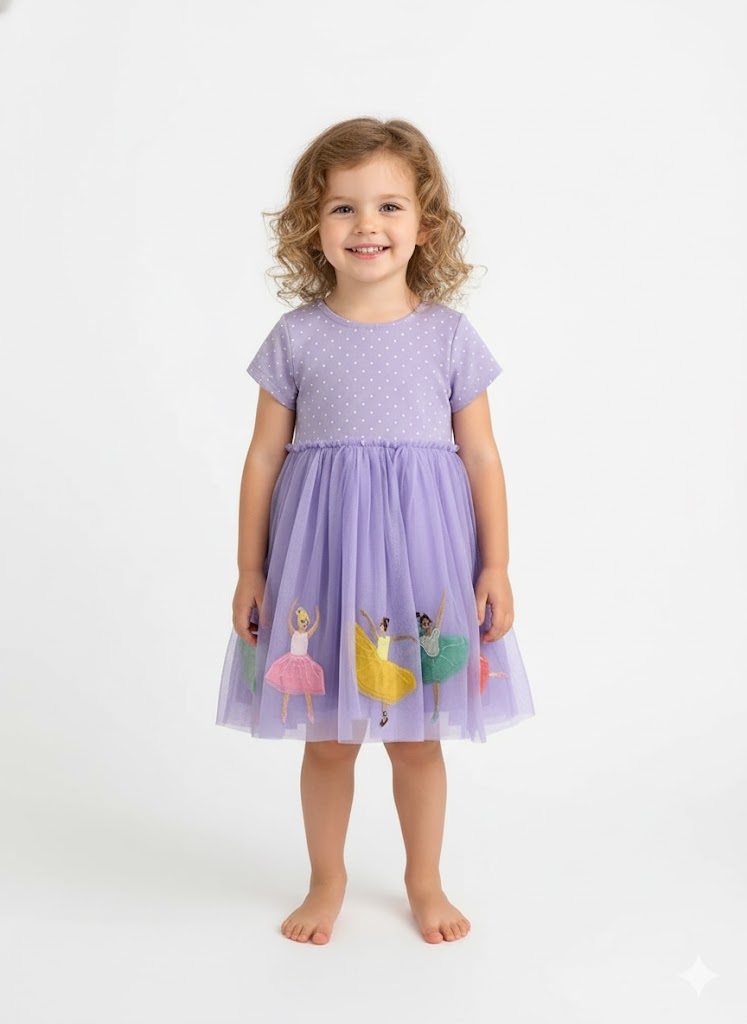 Mini Boden Girls' Ballerina Ami Applique Tulle Dress in Purple (Imperfect)
