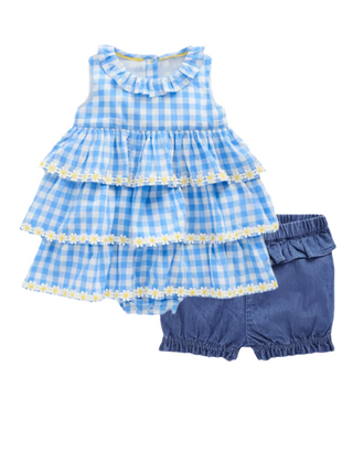 Baby Boden Girls' Ruffle Woven Romper in Gingham Daisies