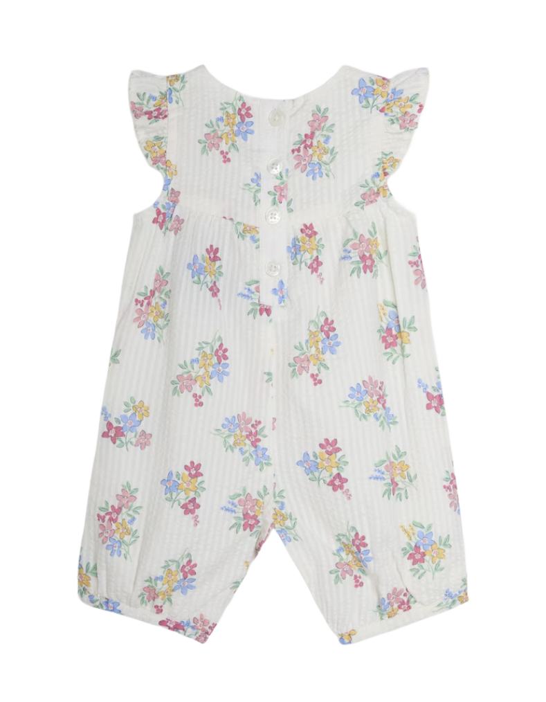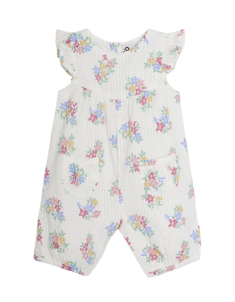 Jojo Maman Bebe Floral Pretty Ruffle Shoulder Sunsuit in White