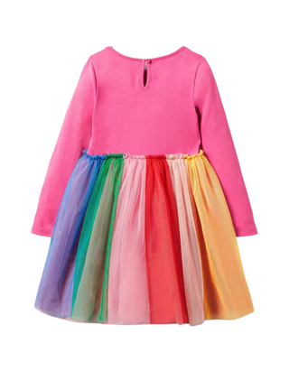 Mini Boden Girl's Long Sleeve Rainbow Tulle Dress in Multi