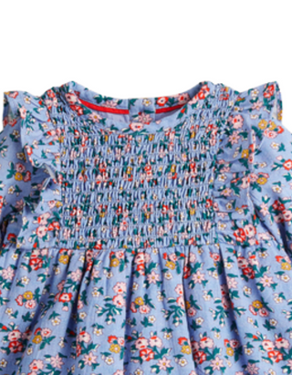 Baby Boden Girls' Fun Printed Smocked Woven Dress in Blue Spring Blooms