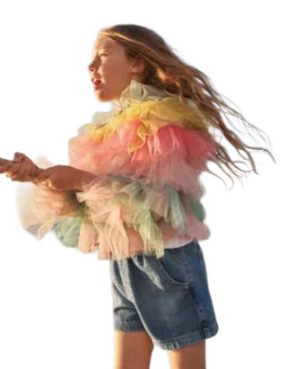 Mini Boden Girls' Tulle Layered Jacket in Rainbow Colour
