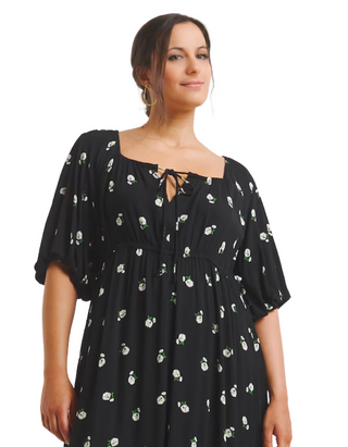 Women's Plus Size Floral Print Crinkle Midi Dress in Black Daisy