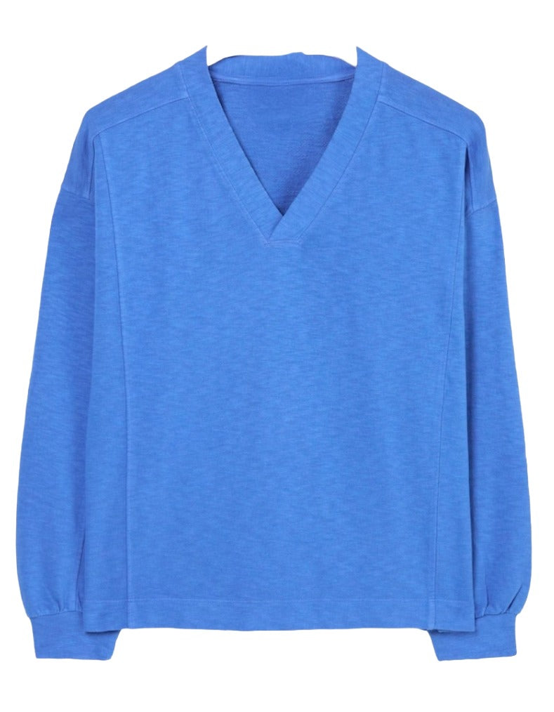 This Gigi V-neck sweatshirt is made from 100% cotton, offering breathable softness and a comfortable fit. Its elegant V-neckline adds a subtle style touch, ideal for casual outings or relaxed evenings.