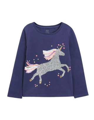 John Lewis Girl's Unicorn Stretch T-Shirt in Peacoat Navy