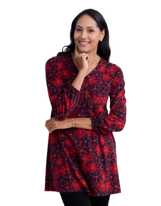Women's Peg Loom A-Line Jersey Tunic in Handicraft Flowers Jam