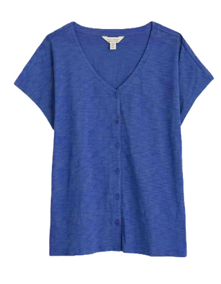 Women's Short Sleeve Studio Glass V-neck Jersey Top in Blue